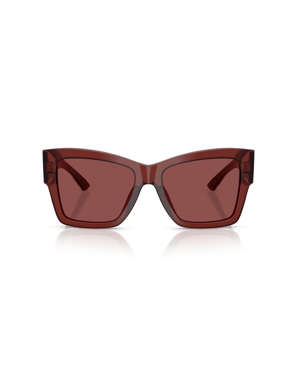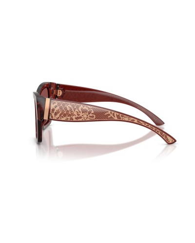 Occhiali da sole Dolce & Gabbana con montatura squadrata in acetato cammello trasparente e lenti in nylon color trasparente a specchio oro giallo vero.